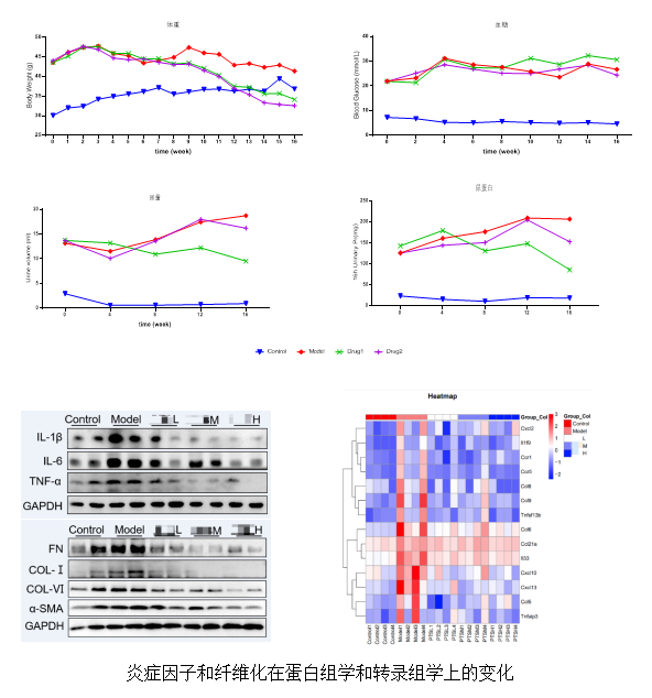| 糖尿病肾病 | db/db小鼠、STZ+高脂饲养(HFD) 机制探索(体外):Glu/AGEs/炎症因子/抗体 |
